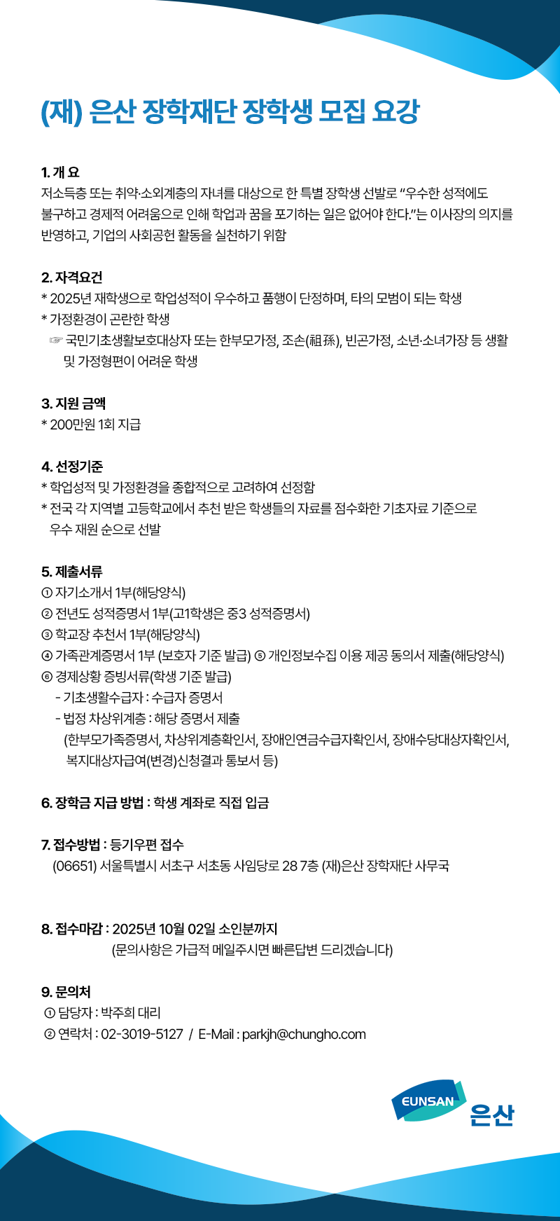 (재) 은산 장학재단 2025년 장학생 모집 요강